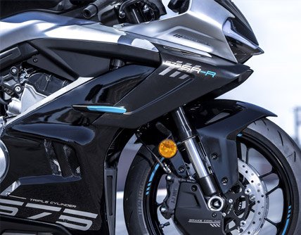 Íþróttamótorhjól hannað fyrir hreina akstursánægju. Knúið áfram af öflugri og einstaklega kraftmikilli þriggja strokka vél, og með samsetningu kappakstursinnblásinnar tækni og nútíma þæginda, gerir nýja CFMOTO 675SR-R þér kleift að njóta sportlegrar akstursupplifunar bæði á brautinni og á almenningsvegum. „Quick-shifter“ gírskiptingakerfið, háþróuð fjöðrun fyrir stöðugleika og nákvæma aksturseiginleika, tjáningarfull loftaflfræðileg hönnun, vinnuvistfræðileg og traustvekjandi sætisstaða – allt þetta lofar einstökum upplifunum frá ferð upp í 220 km/klst hraða.