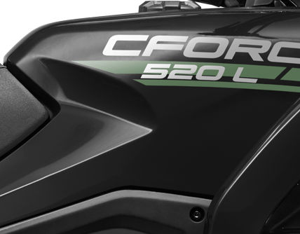 Áreiðanlegur og öflugur förunautur í ævintýrum, hagnýtur aðstoðarmaður í starfi. CFORCE 520 L er með fjórgengis, eins cylindra, 495 cc, 38 hestafla/6200rpm vél og tryggir ásamt háu og lágu drifi með læsingu framúrskarandi aksturseiginleika við allar aðstæður.