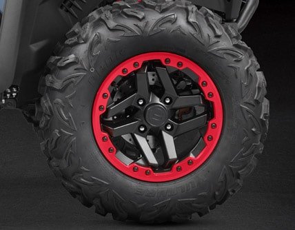 | Dekk | Að framan: 27 x 9.00-14 Að aftan: 27 x 11.00-14 |
