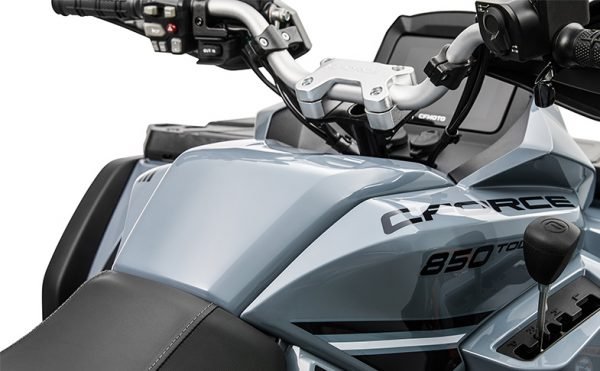 CFORCE 850 Touring er öflugt og áreiðanlegt fjórhjóladrifið fjórhjól, hannað fyrir bæði þægilegan akstur og krefjandi utanvegaakstur. Búið er að auka kraftinn í 75 hestöfl með nýrri 800 cc vél. Sjálfstæð fjöðrun, rafknúin spil, LED ljós og þægilegt tveggja sæta sæti eru allt sem þú þarft fyrir ævintýri án takmarkana.