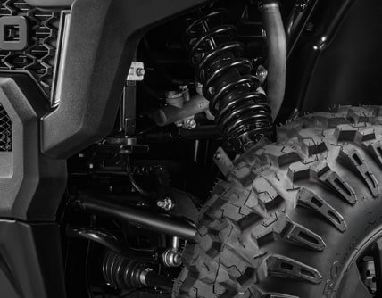 Óháð tvöföld fjöðrun að aftan (ferðalengd – 26 cm) og A-laga framfjöðrun (ferðalengd – 28 cm) með vökvadempurum draga fullkomlega úr jafnvel stærstu höggum, sem gerir kerruna auðvelda og þægilega í stjórnun, jafnvel utan vega. Til að tryggja meiri þægindi er kerran með allt að 33 cm veghæð, sem gerir þér kleift að komast yfir jafnvel erfiðustu kafla utan vega.