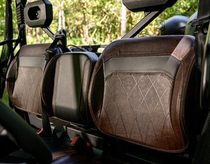 Rúmgott innra rými kerrunnar rúmar allt að þrjá farþega. Mjúk, endingargóð og þægileg sæti úr gervileðri sem auðvelt er að þrífa gera þér kleift að keyra U10 PRO kerruna þægilega. Fyrir enn meiri þægindi er hægt að stilla stýrið um 41° og ökumannssætið um 15 cm.