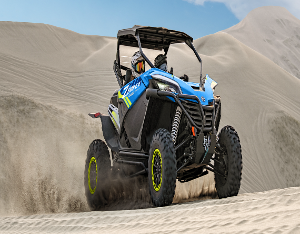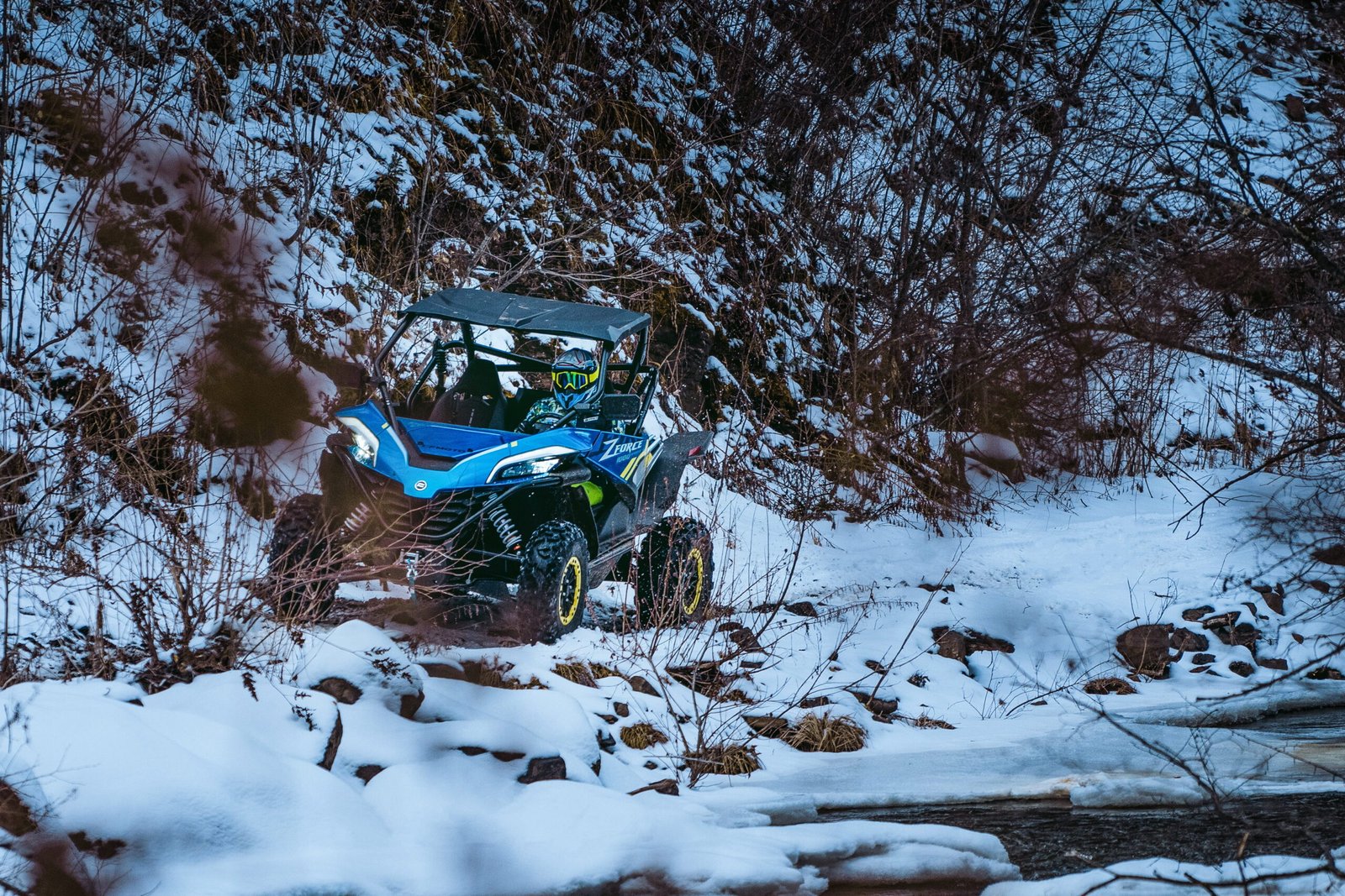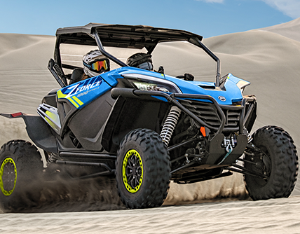 Með traustum og 64 tommu breiðum stöðu, 90 hestöflum vélarafli og liprum aksturseiginleikum hefur CFMOTO lyft frammistöðu SSV á nýtt stig. Hann lítur jafn árásargjarn út og hann framkvæmir, með skörpum línum og kraftmikilli stöðu sem gerir hann að sérstakri í hópi SSV-bíla. Risavaxin 29 tommu dekk sem eru fest á stílhrein og sterk 14 tommu álfelgur leggja grunninn að frábærum akstri á þessum öfluga sportbíl. Haltu þér fast og búðu þig undir spennandi akstur.