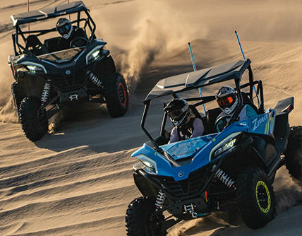 Undirvagninn er með 340 mm veghæð, sjálfstæða tvöfalda A-arma fjöðrun að framan og QUADLINK afturfjöðrun. Búin stillanlegum gasdempurum að framan og aftan, 14 tommu BEADLOCK felgum og 29 tommu AT dekkjum. Stilltu fjöðrunina á ferðinni fyrir fullkomna akstursupplifun, allt frá hraðskreiðum sandöldum til tæknilegra grýttra gljúfra og alls þar á milli. Gerðu breytingar á þjöppunar- og frákastdempun piggyback demparanna án verkfæra, sem hefur verið stækkuð í sjö stillingar.