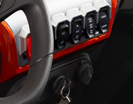 Buggy-bíllinn er með fjórum þægilegum sportsætum. Framsætið er aðlagað að mismunandi ökumönnum, stillingarsvið þess er 96 mm. Stillingarsvið stýrisins er 110 mm, þannig að ökumenn geta auk þess stillt og aðlagað farþegarýmið að hæð sinni.